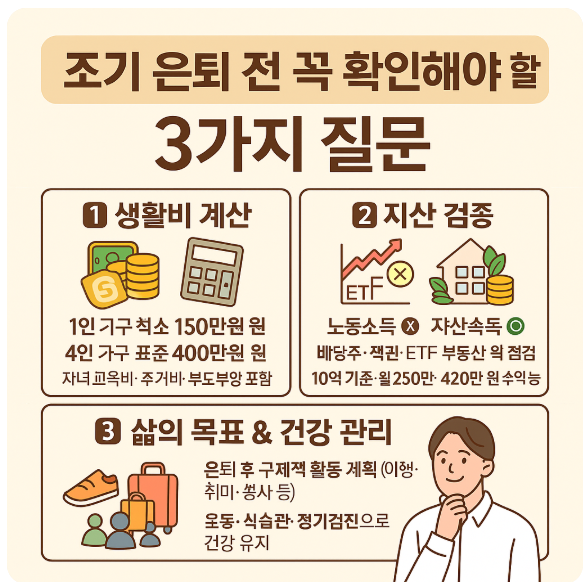 “이 세 가지 질문에 답할 수 있다면, 조기 은퇴는 준비된 선택이다.”