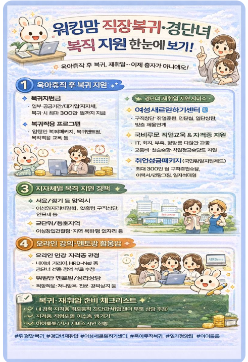| 육아휴직 후 복귀, 재취업… 국가·지자체 프로그램 한눈에! (0) | 2026.01.06 |